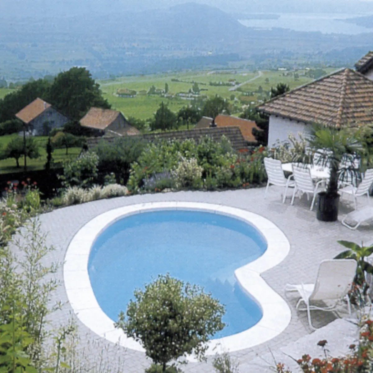 Keramik De Luxe Farben mit Pool-Beispiel im Hintergrund: